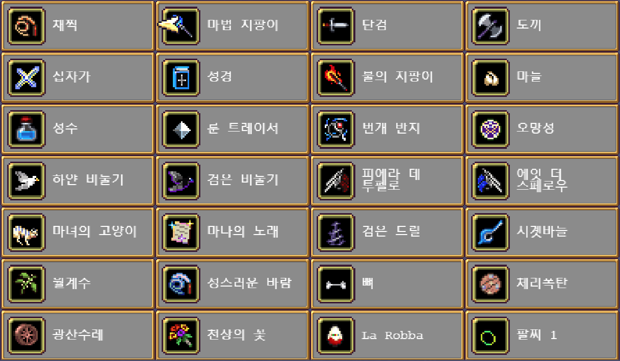 효과 : 10초마다 범위의 적에게 남아있는 체력의 절반의 데미지를 줍니다. 이 아이템으로 사신도 잡을 수 있습니다.