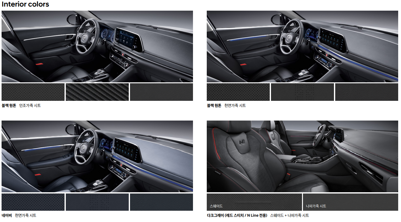 쏘나타 하이브리드 인기 색상으로는 세레니티 화이트 펄이 가장 인기가 많고 그다음이 녹턴 그레이 메탈릭, 어비스 블랙펄 순으로 많이 선택했습니다.