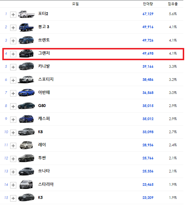 올해 1월부터 지금까지 팔린 그랜저 순위만 봐도 엄청나게 팔렸고, 지금 대기자만 8만 명이라는 소리도 있던데, 새로운 그랜저도 디자인 잘 빠진 것 같아서 아마 차량 판매 순위는 계속 상위권을 유지할 것으로 예상됩니다. 하이브리드도 포함되어 있다고 하니 아마 하이브리드 쪽으로 많이 몰릴 것 같은데, 그러면 출고 대기가 지금도 2년 걸린다는데 더 걸리는 건 아닌지 모르겠네요. 현대 아산 공장에 생산라인을 증축해서 월 1만 대 그랜저 생산을 계획 중이라고 하니 그랜저 기다리시는 분들에게는 희소식이 될 것 같습니다. 가격이 오르긴 오를 텐데 얼마나 올라갈지는 조금 더 지켜봐야 할 것 같네요.