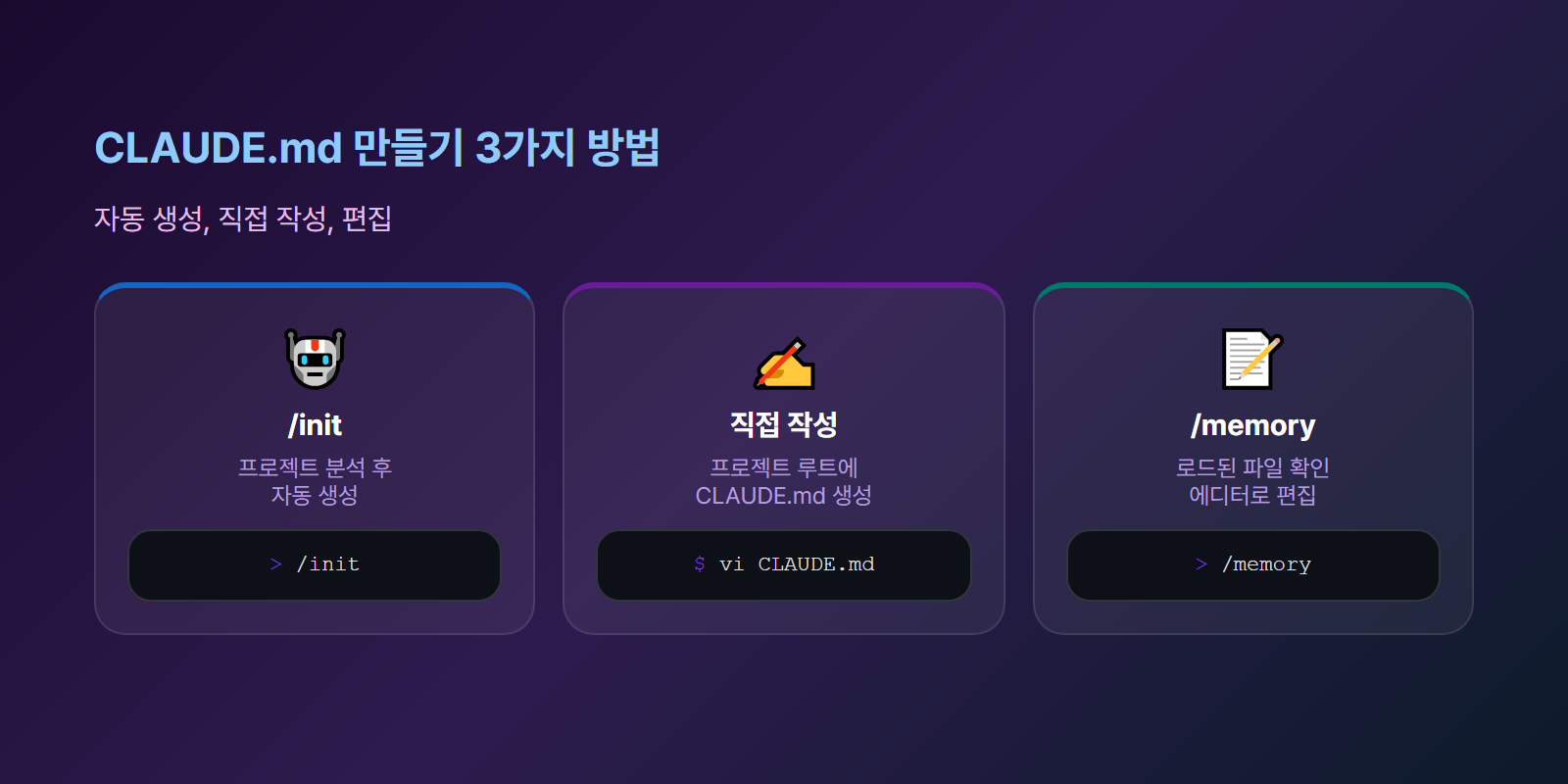 처음에는 /init으로 자동 생성한 뒤, 프로젝트 특수 규칙을 하나씩 추가해 나가세요. CLAUDE.md를 잘 관리하면 Claude Code가 마치 오래 함께 일한 팀원처럼 프로젝트를 이해하고 작업합니다.