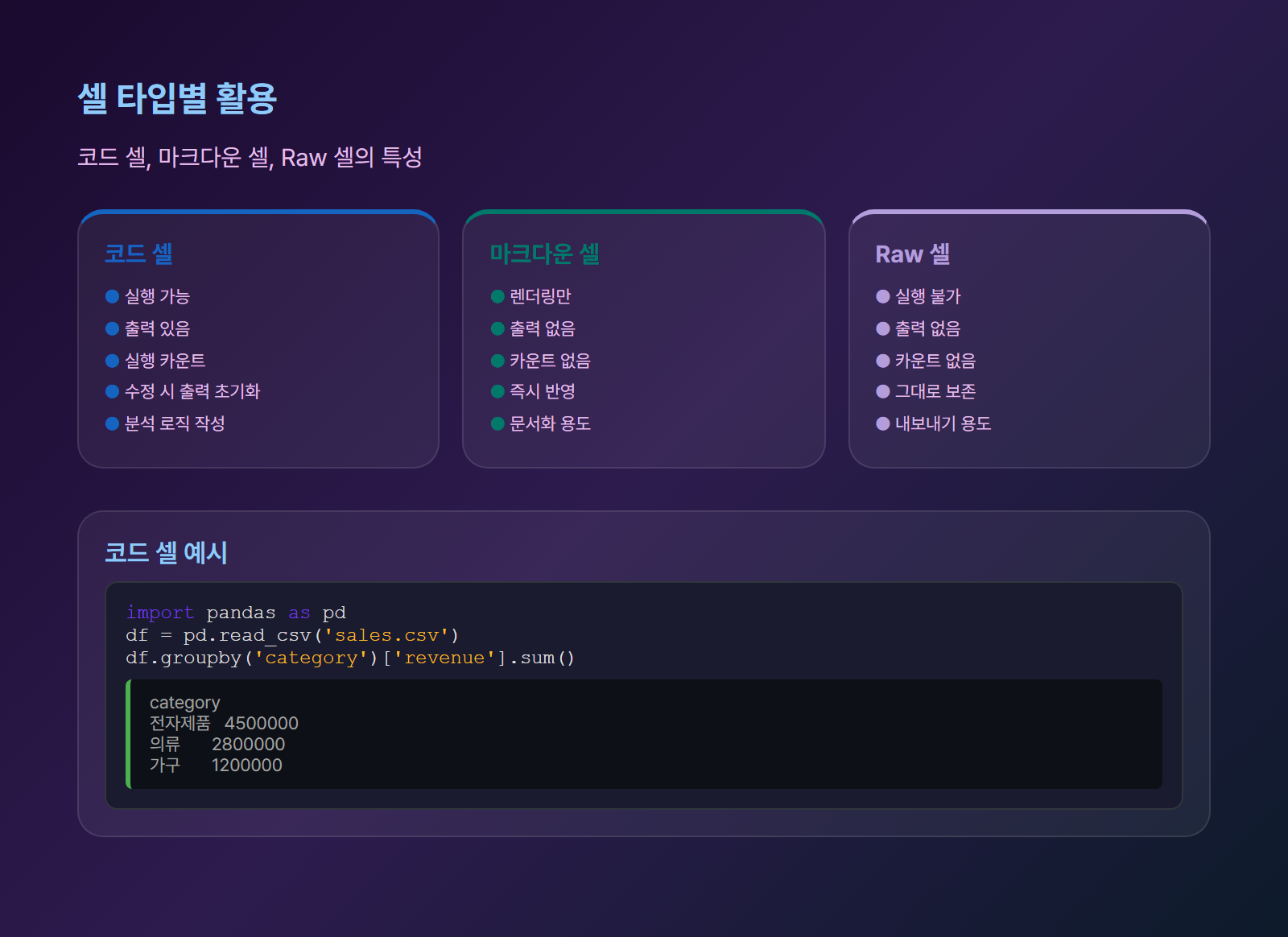 | 즉시 실행 | Shift+Enter로 셀 즉시 실행 |