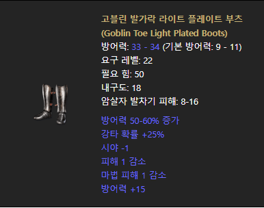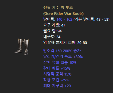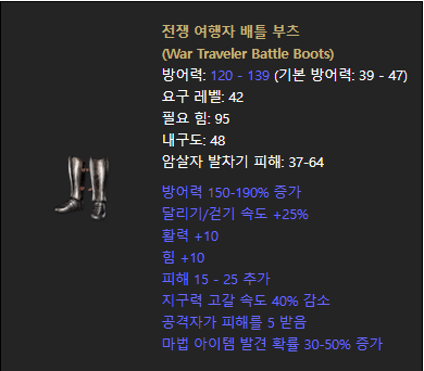 신발 : 고블린 발가락 or 전쟁 여행자 or 선혈 기수